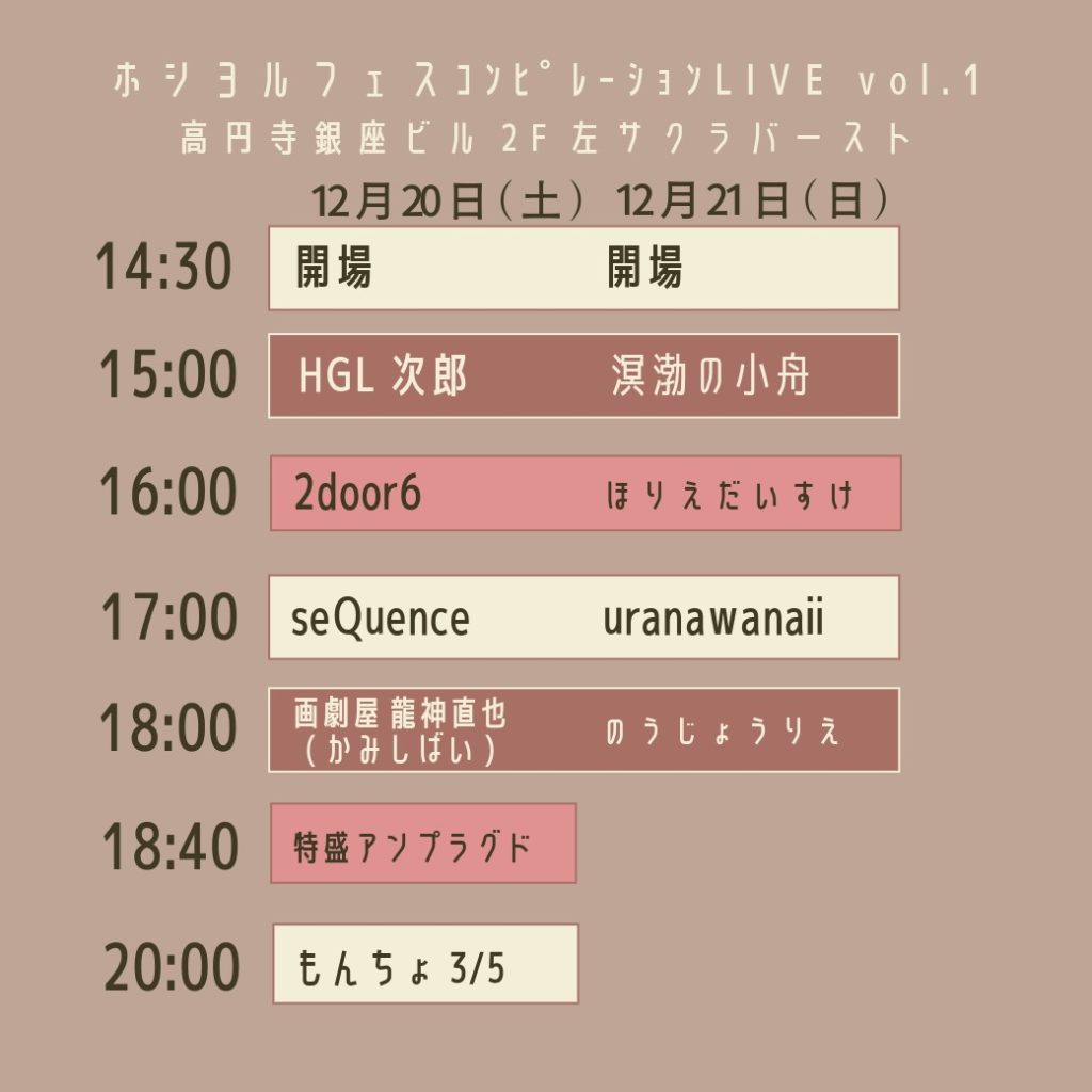 (日)2112月00:00ホシヨルフェス コンピレーション!vol.1溟渤の小舟(めいぼつのこぶね) / ほりえだいすけ / uranawanaii /のうじょうりえ